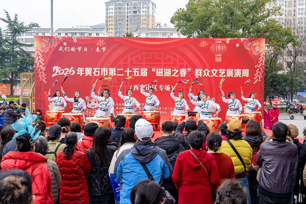 27日,2026年黄石市第二十五届“磁湖之春”群众文艺展演周(西塞山区专场)在黄石武商MALL广场举行。(吴山 摄)