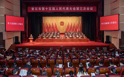 上午9时,郄英才宣布,黄石市第十五届人民代表大会第三次会议开幕!全体起立,奏唱国歌。