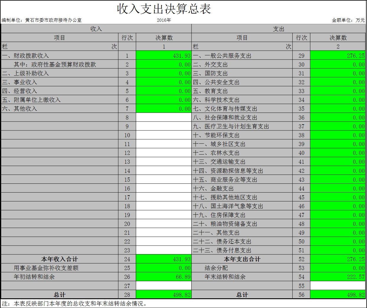 行政单位年末结转结余222.57万元。