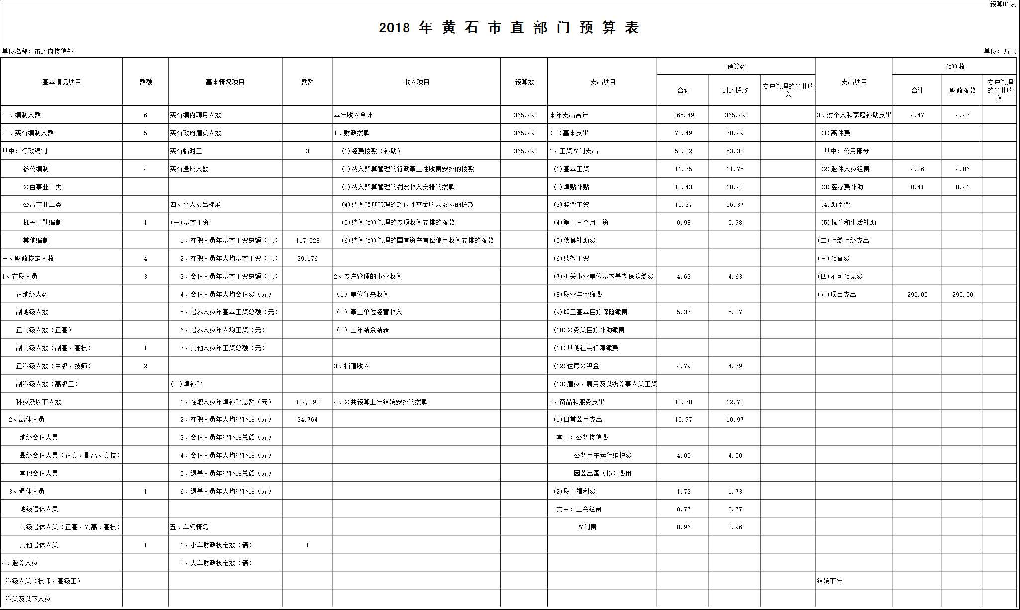 接待办为纳入财政预算管理正县处级事业单位,属市财政全额拨款参公管理单位。根据市编委“三定”方案,事业编制5人,事业单位工勤编制1人。实有在职人员4人,主任1人,副主任1人,科级职数2人,退休人员1人。