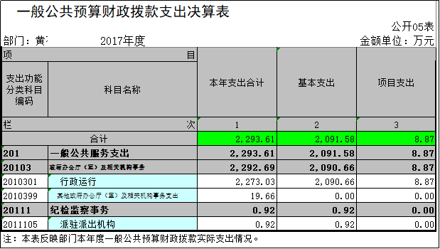五、2017年一般公共预算财政拨款支出决算表(表5)