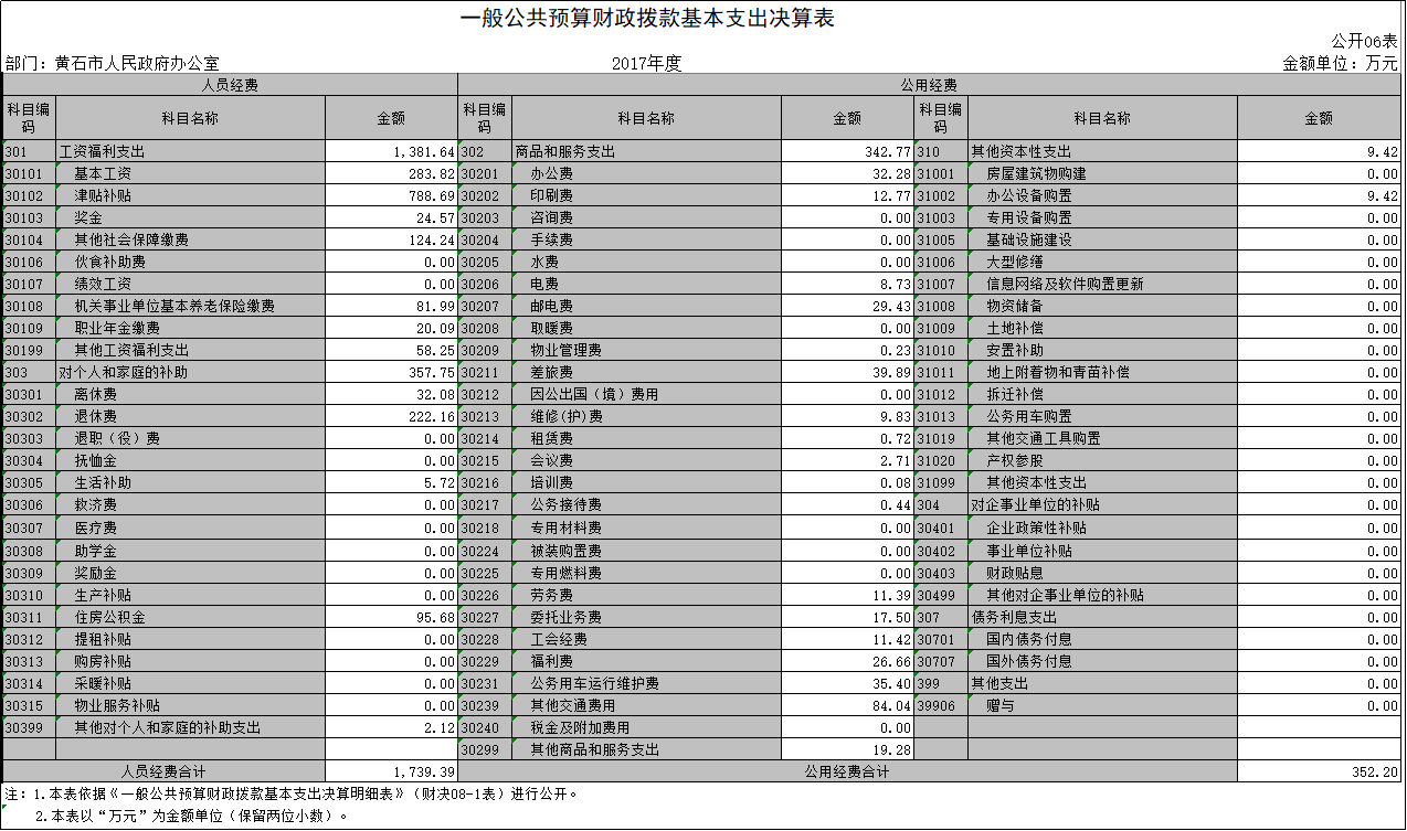 六、2017年一般公共预算财政拨款基本支出决算表(表6)