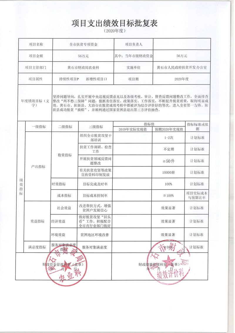 五、市政府扶贫开发办公室2020年部门预算项目支出绩效目标申报书
