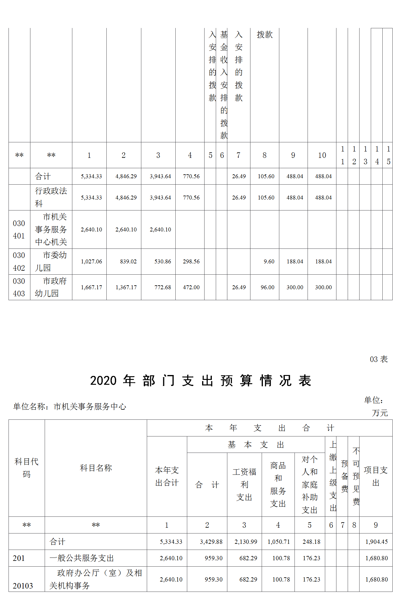 (二)、2020年部门预算支出情况 我中心2020年部门预算支出5334.33万元,比上年减少56.87万元,同比减少1.05%。其中基本支出3429.88万元,比上年3567万元减少137.12万元,同比减少3.84%,项目支出1904.45万元,比上年1824.20万元增加80.25万元,同比增加4.40%。当年支出预算与市财政局批复的预算数一致。详细明细如下: