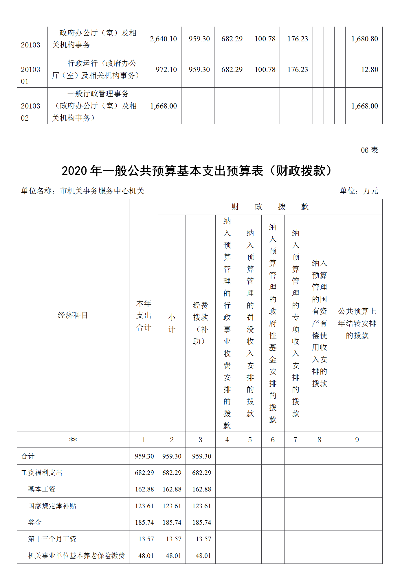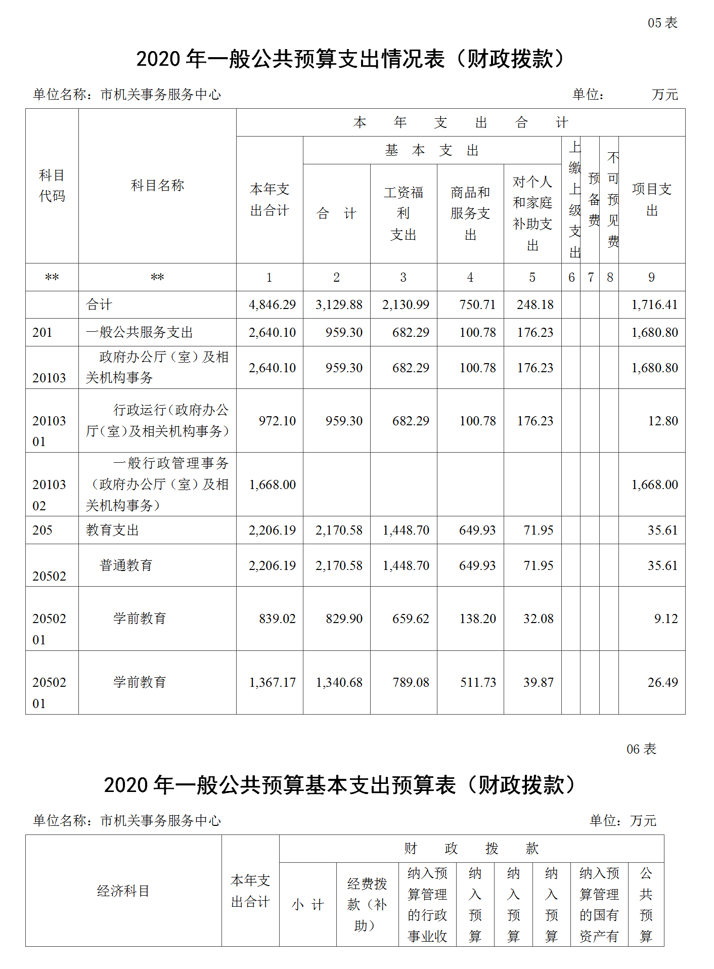 6、2020年一般公共预算基本支出预算表(财政拨款)