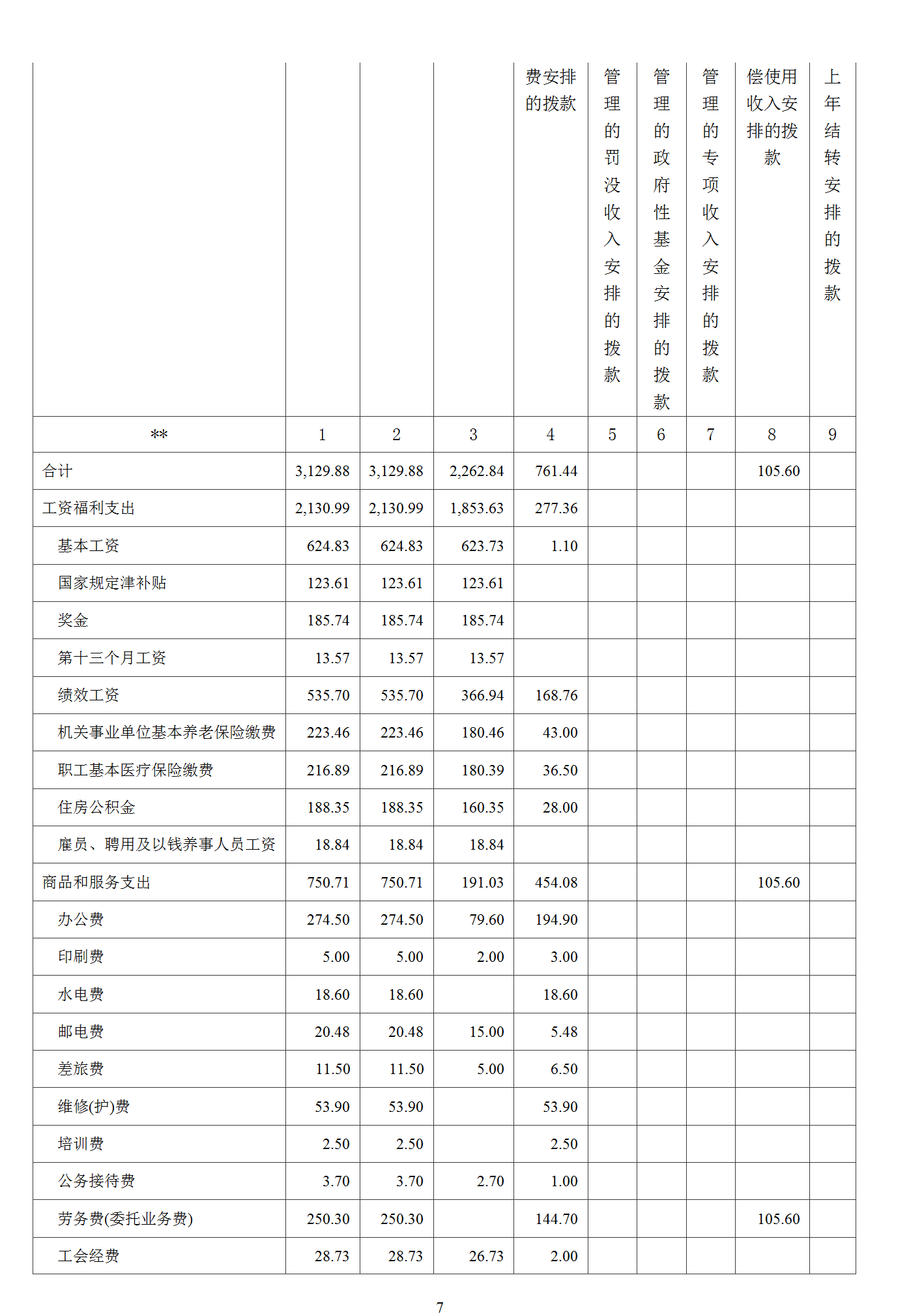 3、机关运行经费支出1050.71万元,比上年预算支出减少79.26万元,同比减少7.01%,具体组成明细为:一是日常公用经费940.48万元,比上年预算减少88.11元,机关运行经费支出主要用于日常办公费507.50万元、印刷费5万元、水电费23.60万元、邮电费20.48万元、差旅费11.50万元、维修(护)费53.90万元、培训费2.50万元、公务接待费3.70万元、劳务费312.30万元;二是交通费28.10万元,比上年预算减少0.06万元,其中公务车辆运行及维护费4万元,比上年减少0万元;在职人员公务交通补贴24.10万元,比上年预算减少0.06万元;三是工会经费28.73万元,比上年预算增加2.85万元;四是职工福利费53.40万元,比上年预算增加6.06万元。