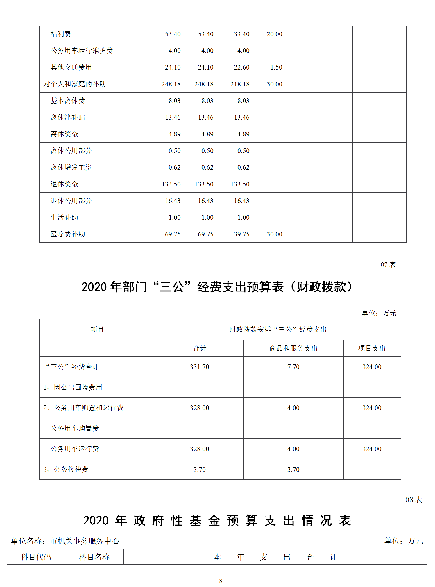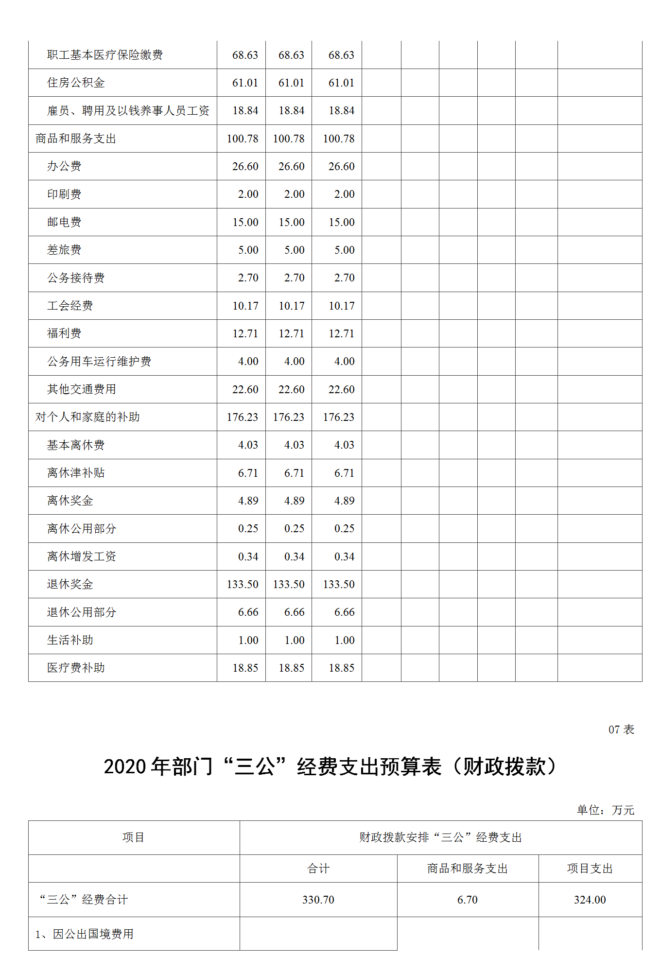 7、2020年部门“三公”经费支出预算表(财政拨款)
