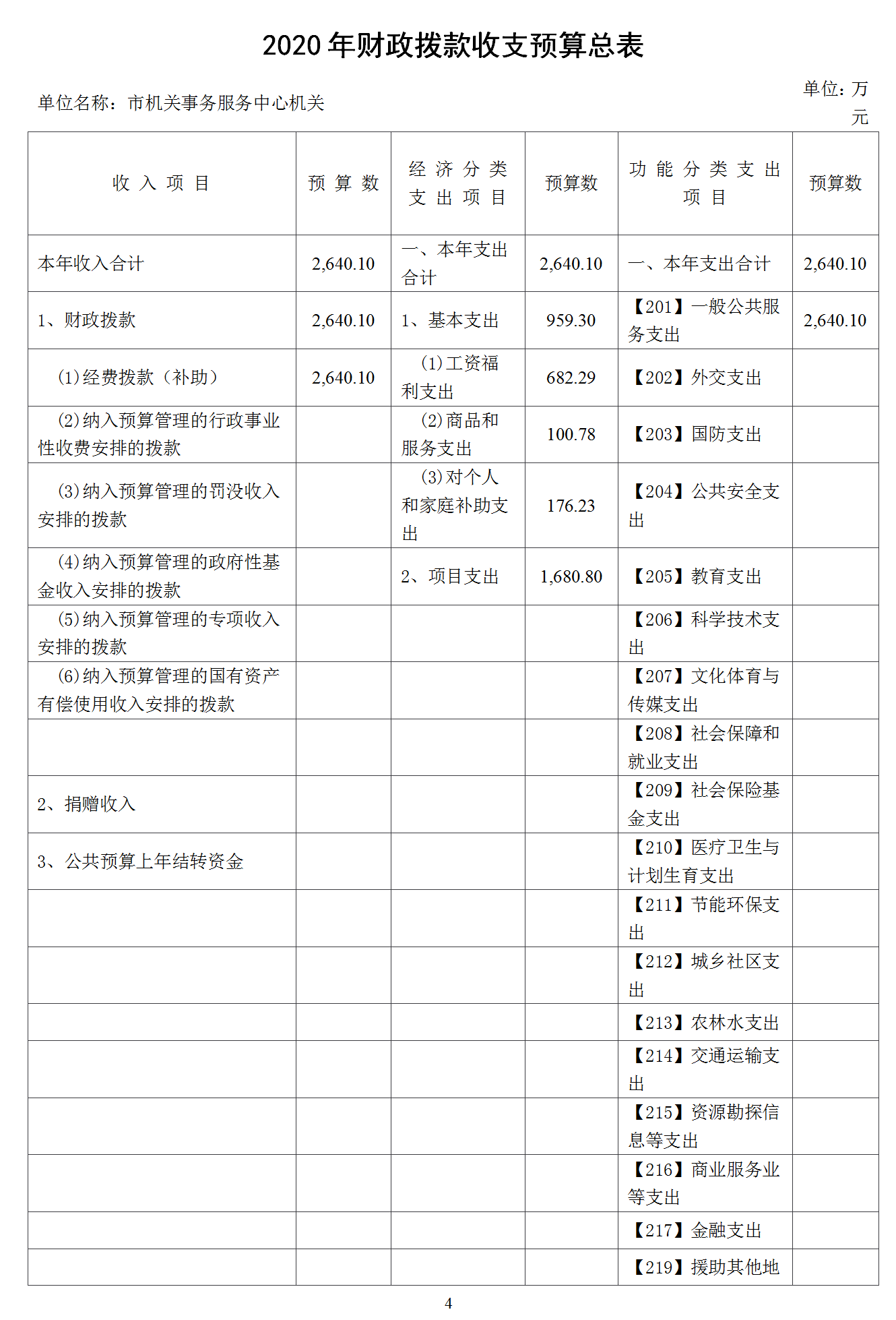 黄石市机关事务服务中心(本级)2020年部门预算情况公开