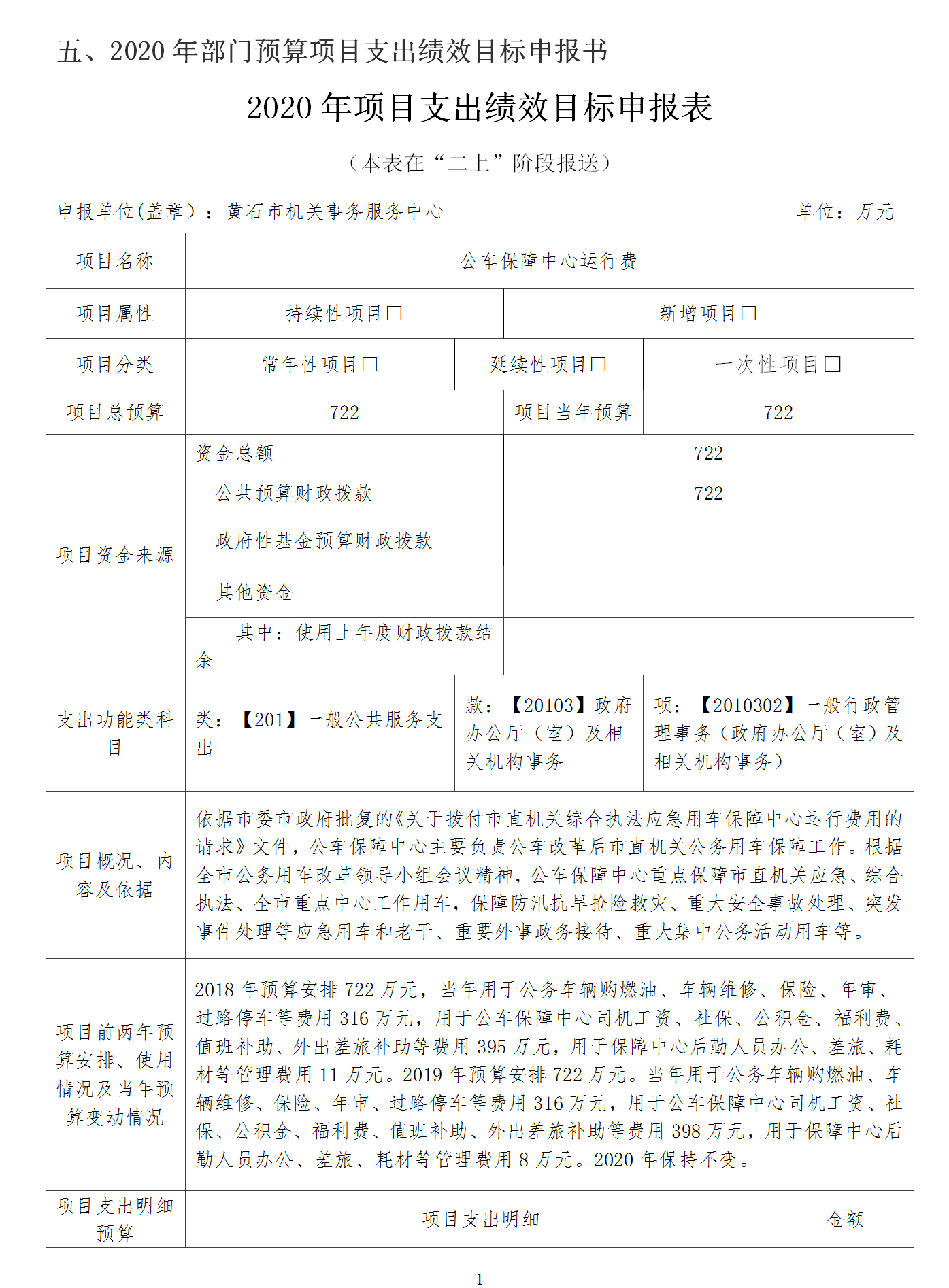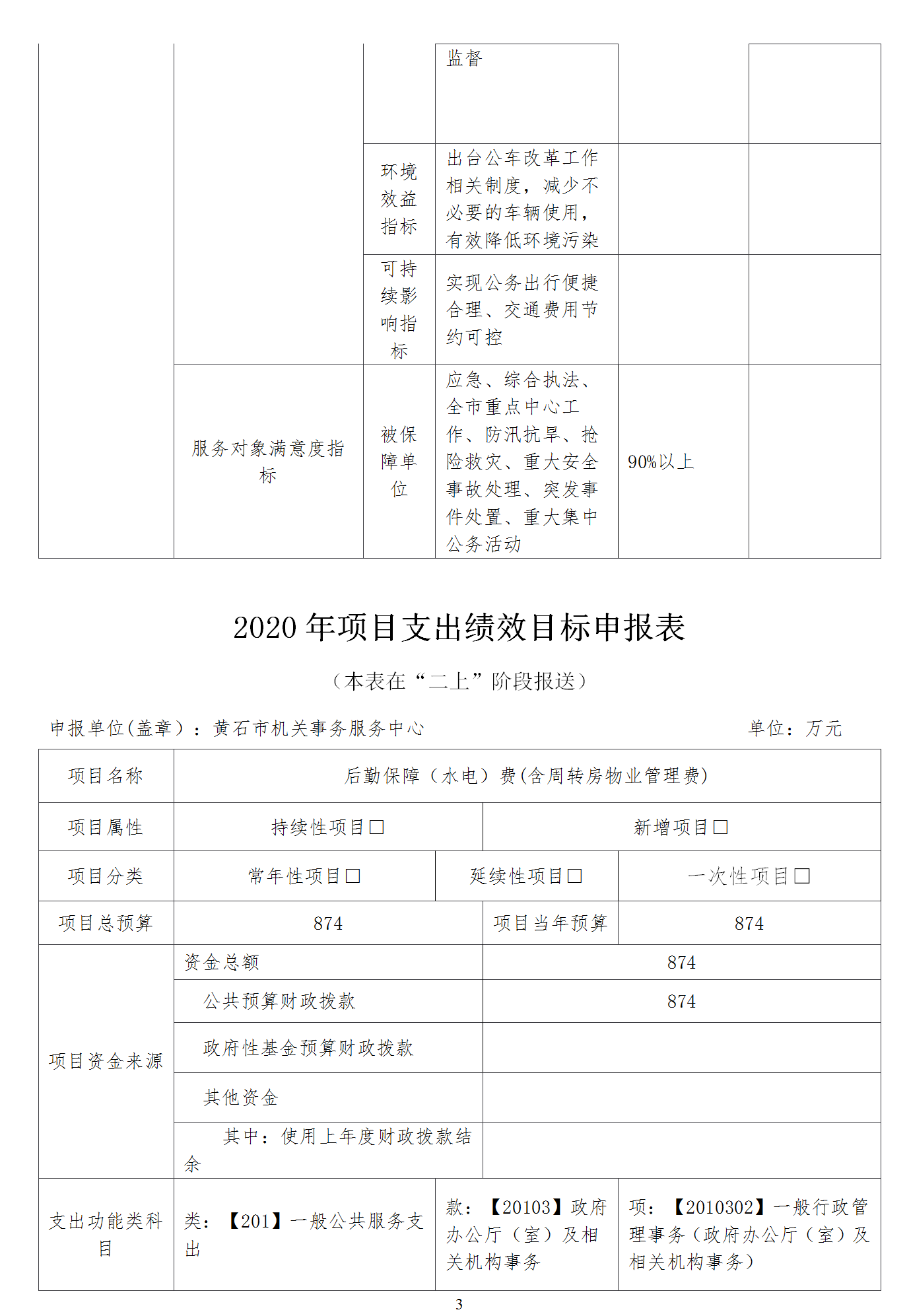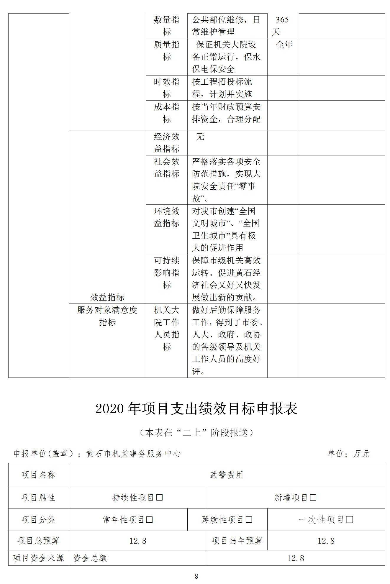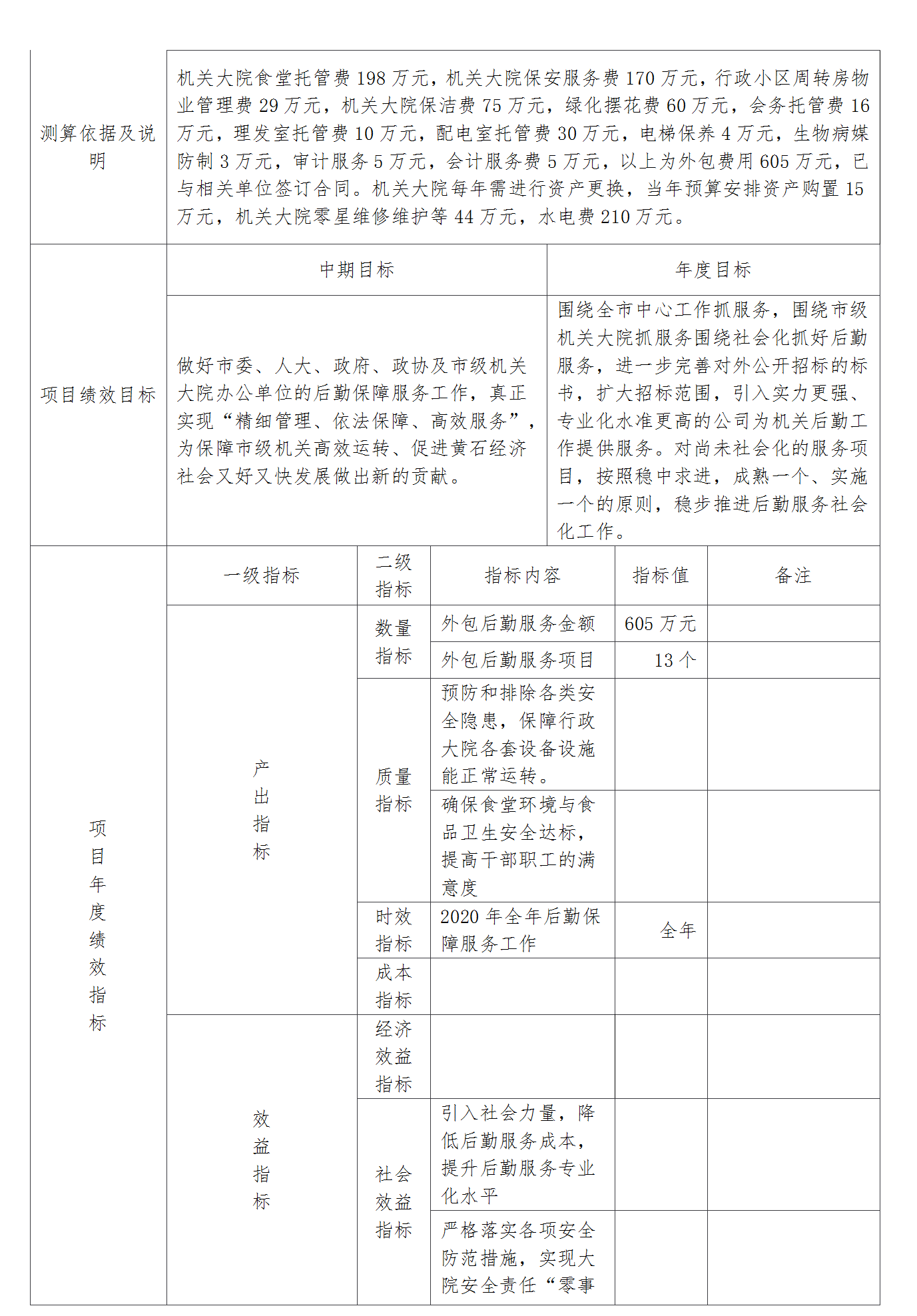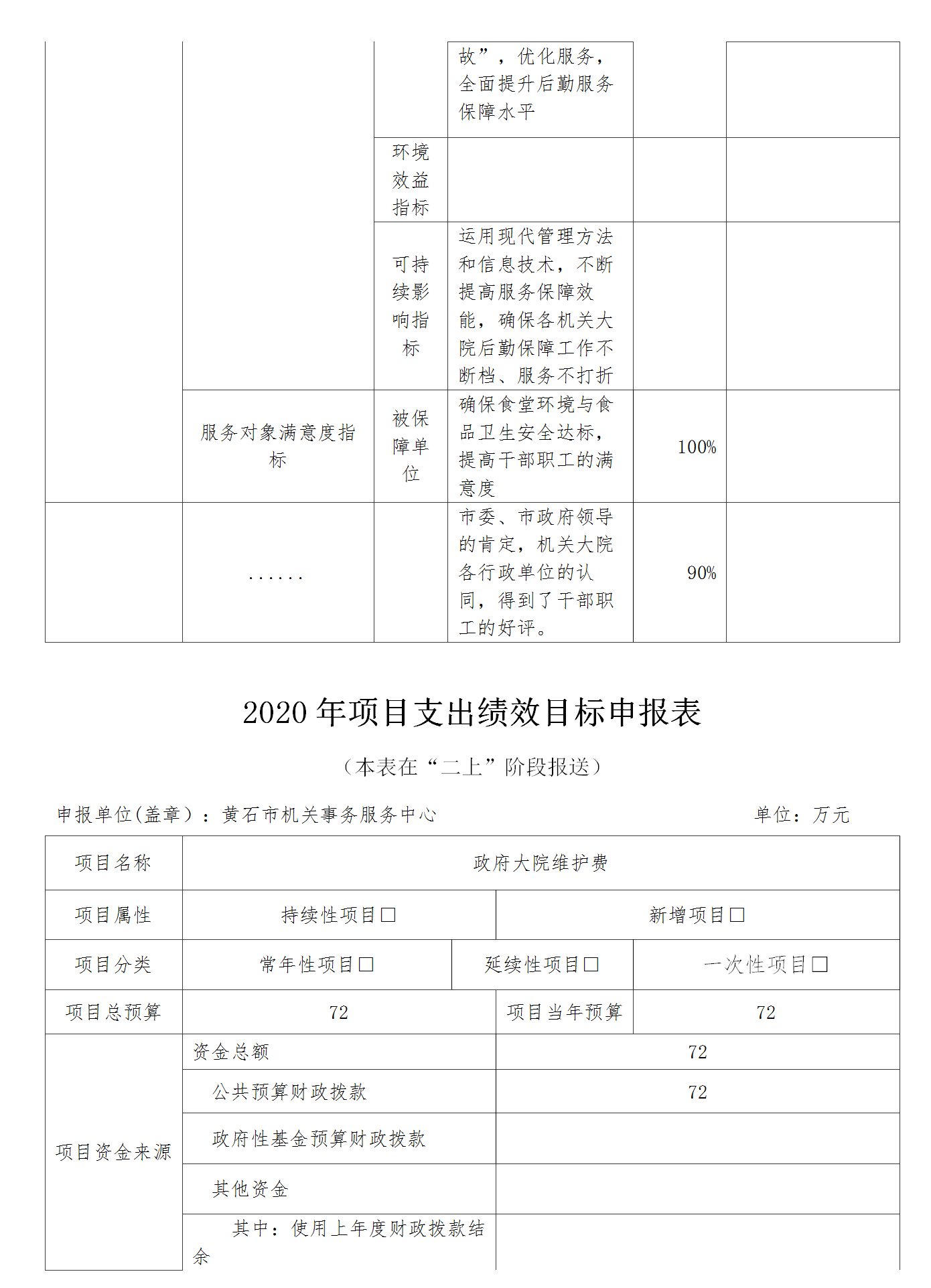 第五部分 黄石市机关事务服务中心2020年部门预算项目支出绩效目标申报书