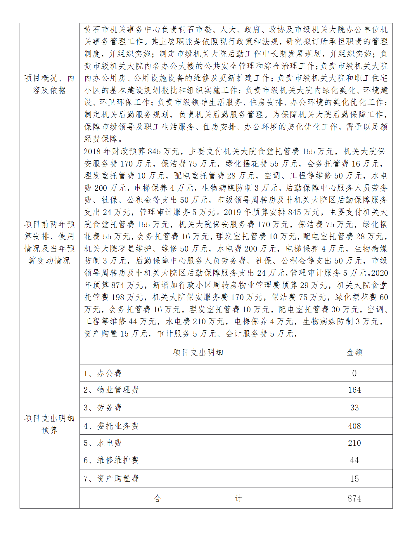 第四部分 黄石市机关事务服务中心2020年部门预算项目支出编制情况