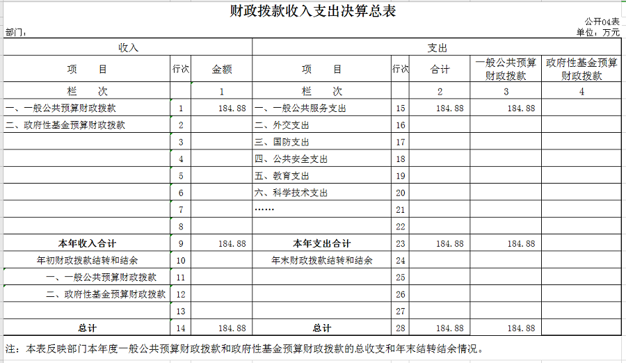 4、财政拨款收入支出决算总表(表4)
