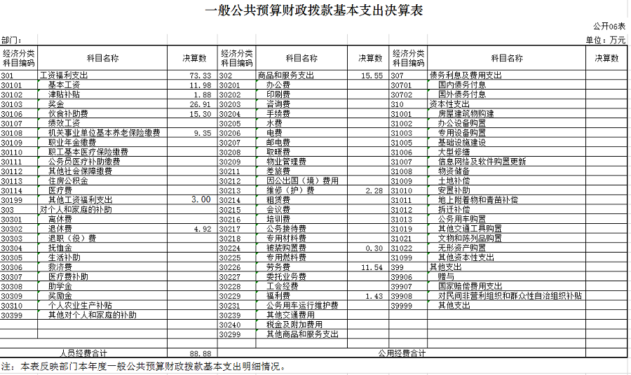 3、基本支出:指为保障机构正常运转、完成日常工作任务而发生的人员支出(包括基本工资、津贴补贴等)和公用支出(包括办公费、水电费、邮电费、交通费、差旅费等)。