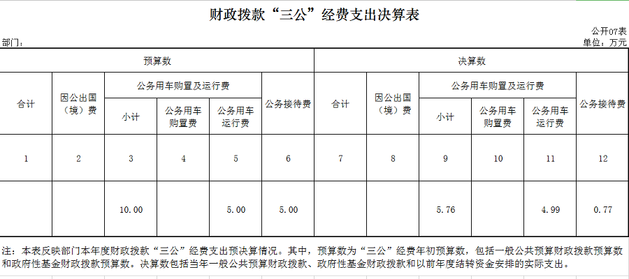 根据驻京工作实际,本着厉行节约的原则,我单位2019年“三公”经费年初预算为10万元(公务接待费5万元,公务用车运行维护费5万元),本年“三公”经费决算数5.76万元(公务接待费0.77万元,累计接待9批次,38人次。本单位公务用车购置及保有量2台,公务用车运行维护费4.99万元,因公出国(境)团组及人数为0.)相比上年“三公”经费支出7.33万节省了1.57万元。