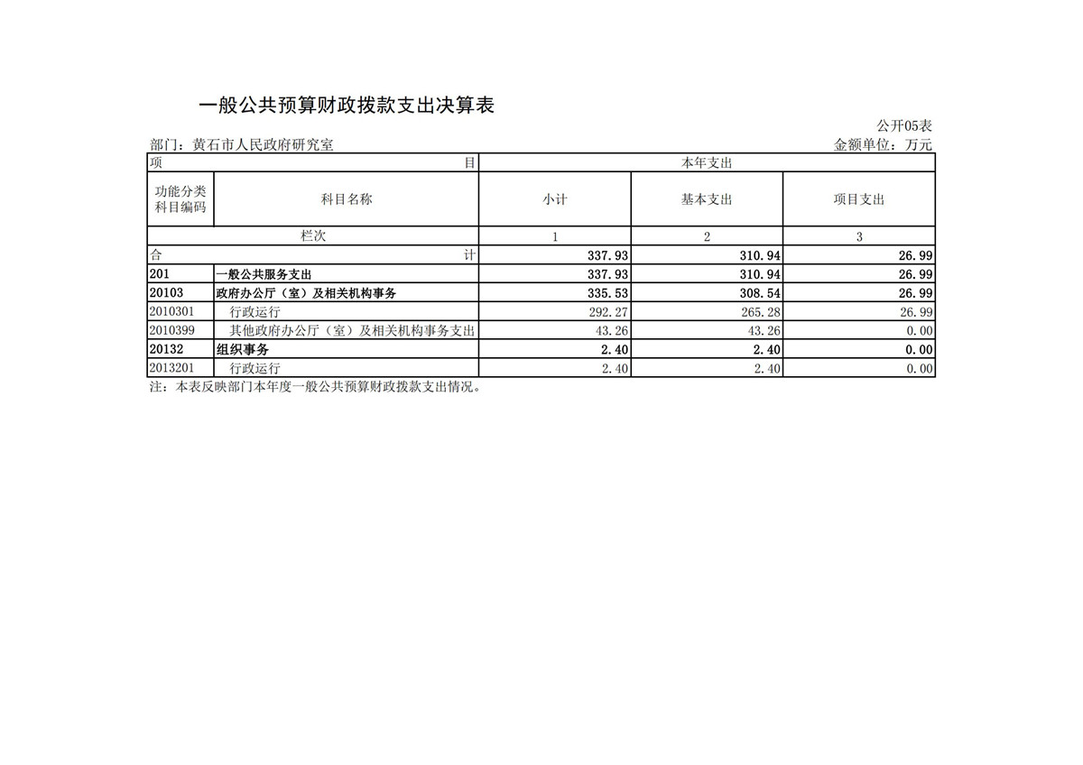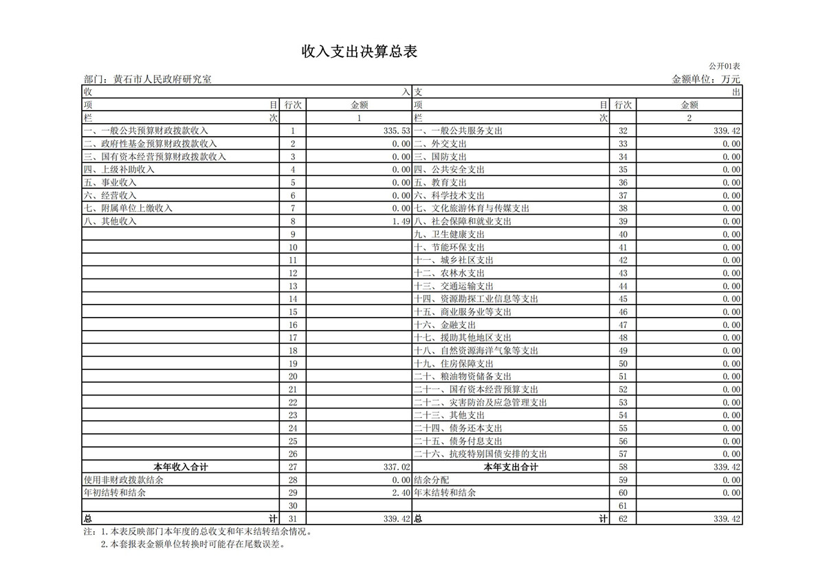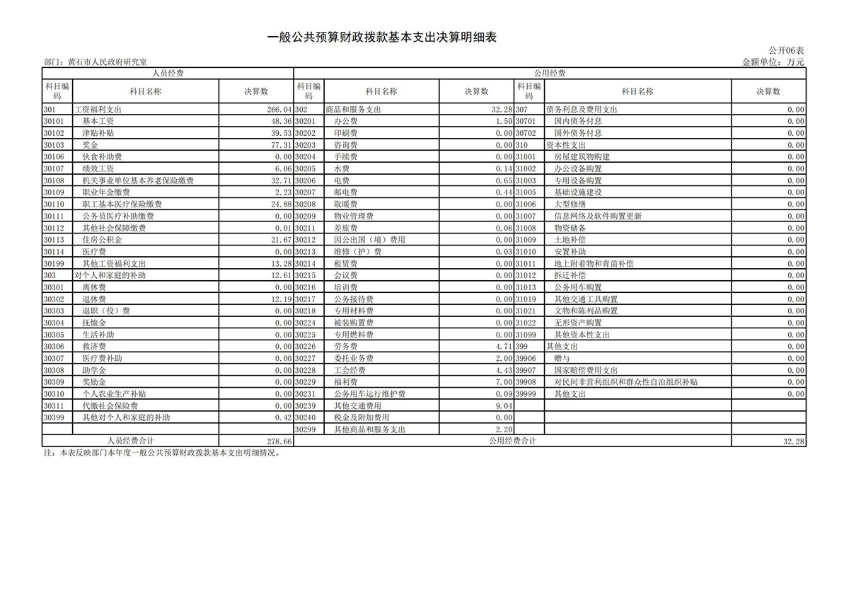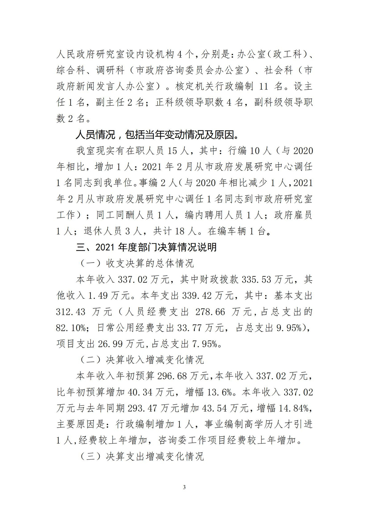 黄石市人民政府研究室2021年度部门决算公开说明