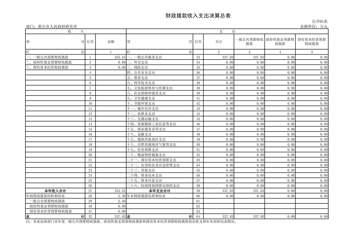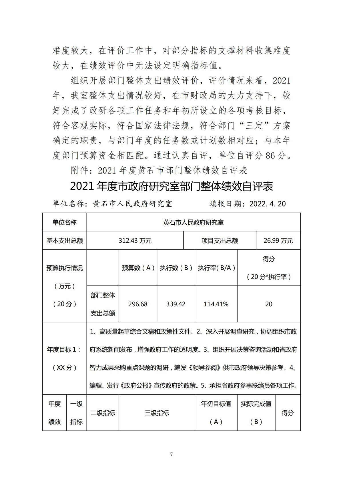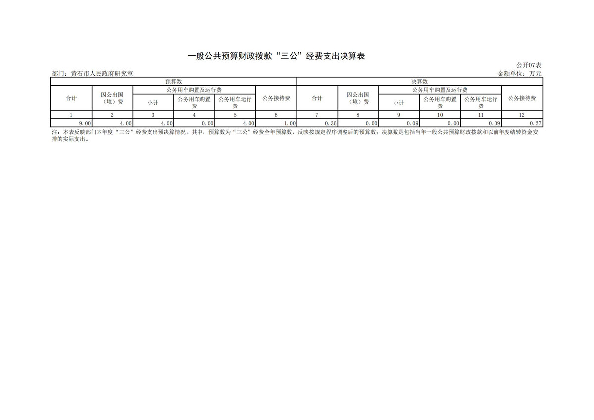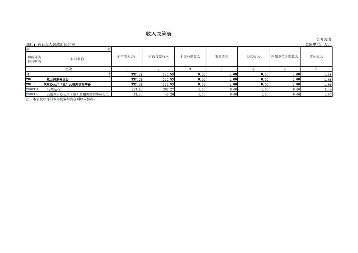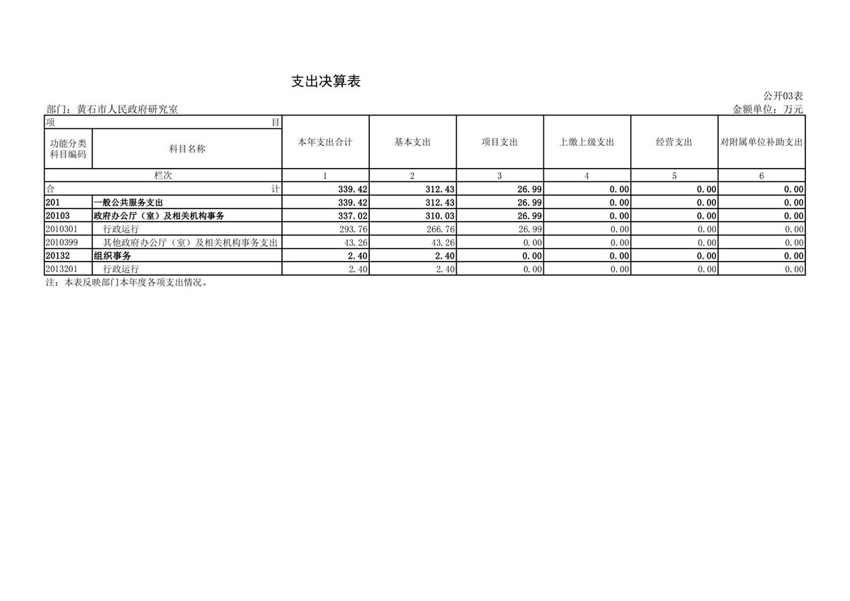 黄石市人民政府研究室2021年度部门决算公开说明