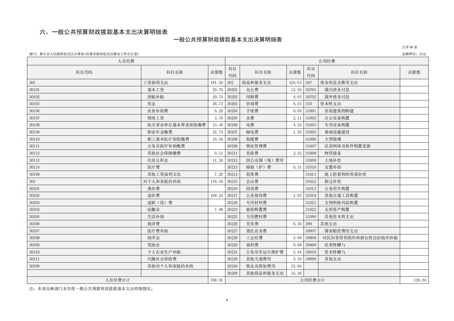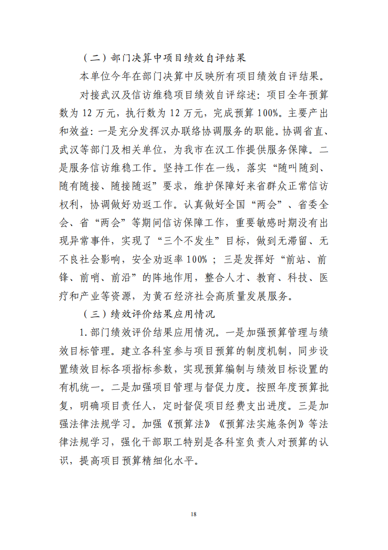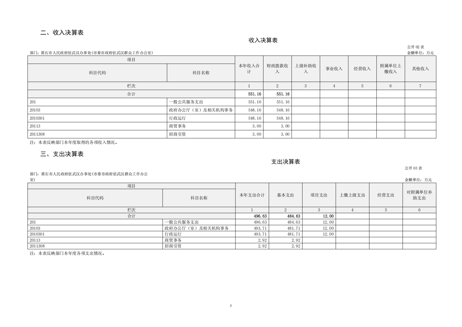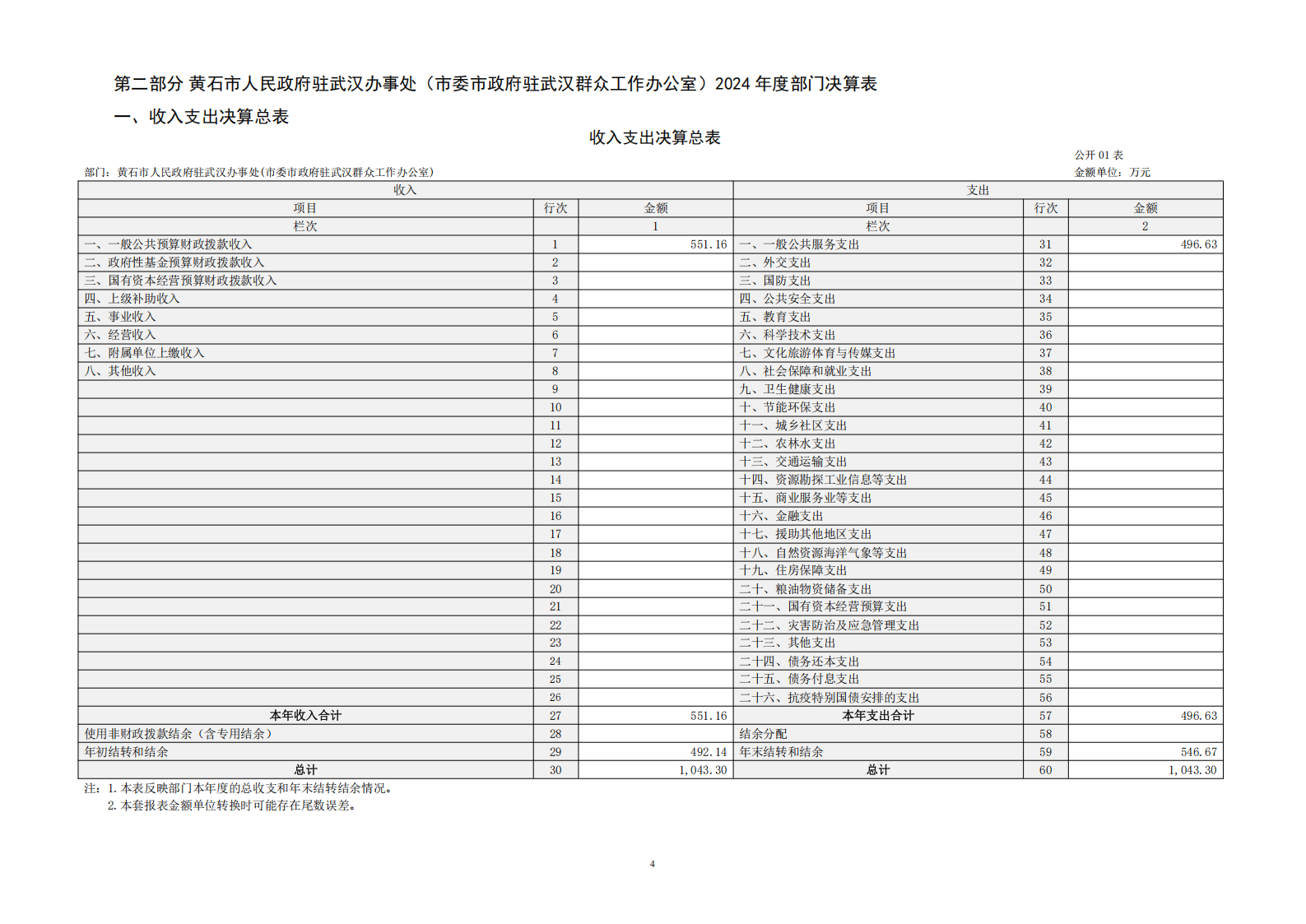 黄石市人民政府驻武汉办事处(市委市政府驻武汉群众工作办公室)部门2024年度部门决算