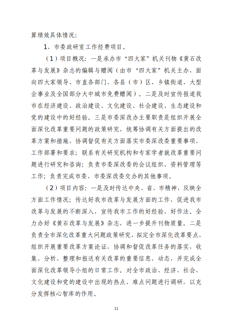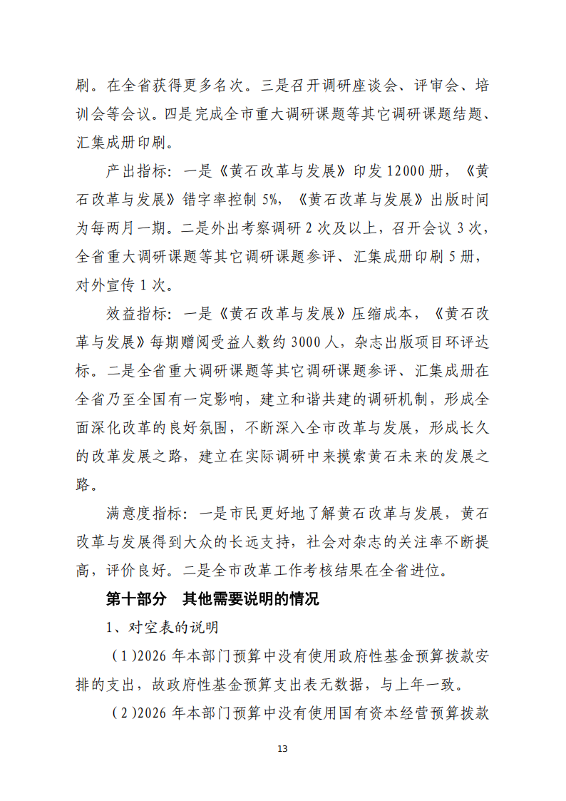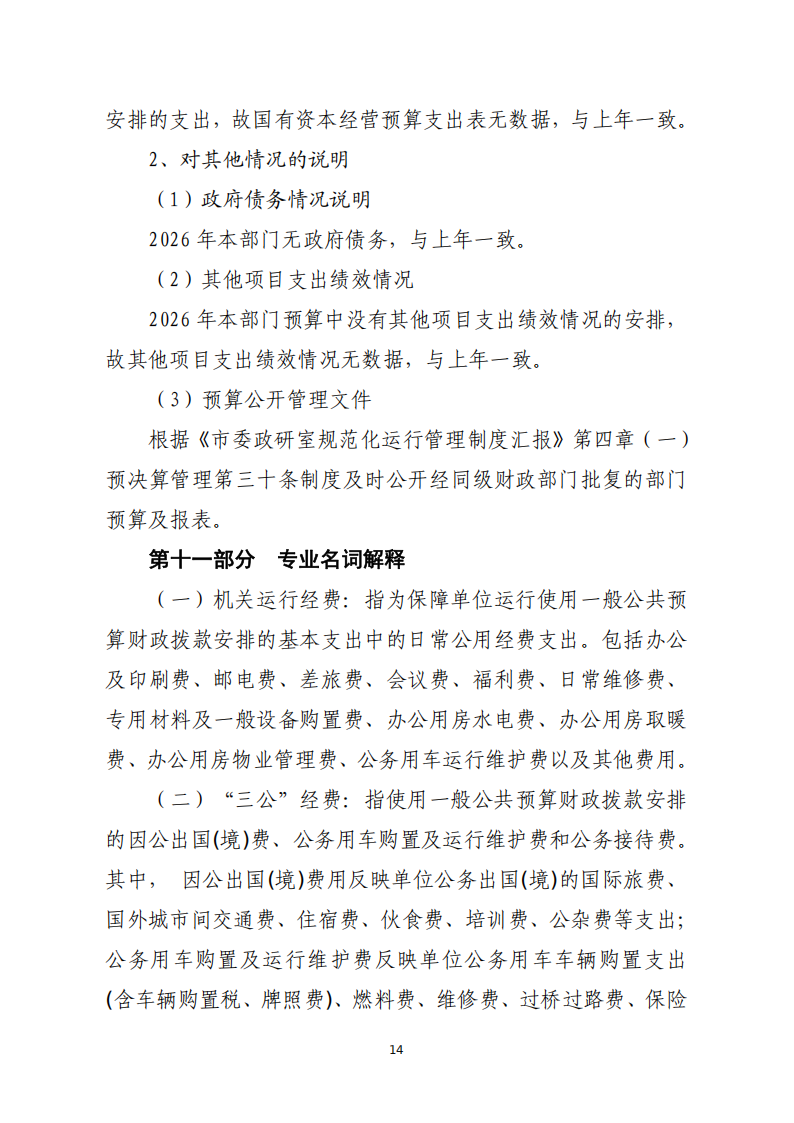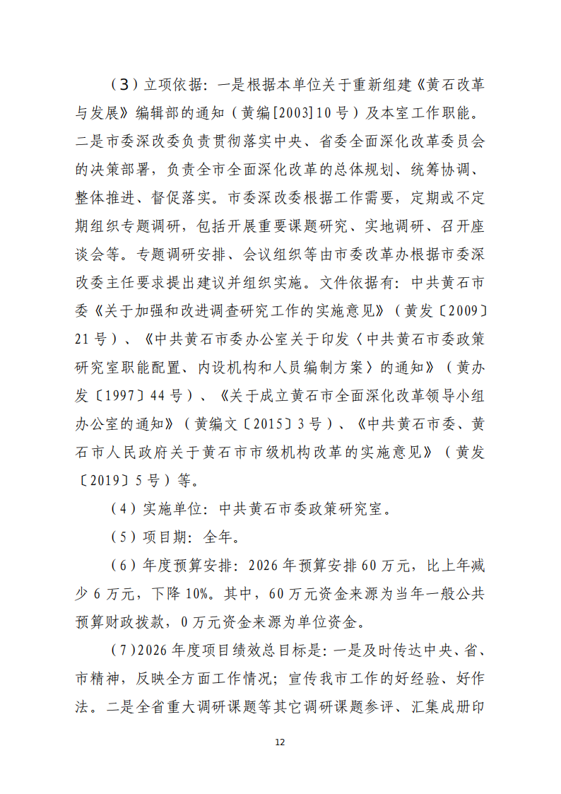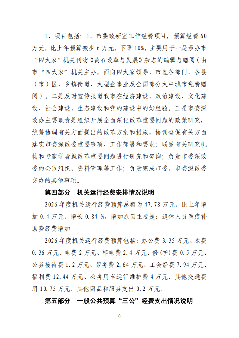 2026年度中共黄石市委政策研究室部门预算公开情况说明