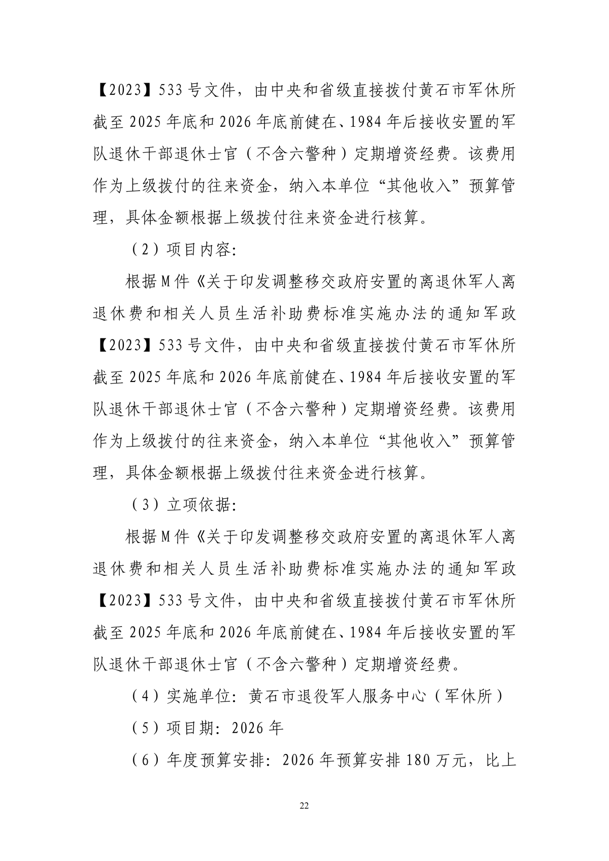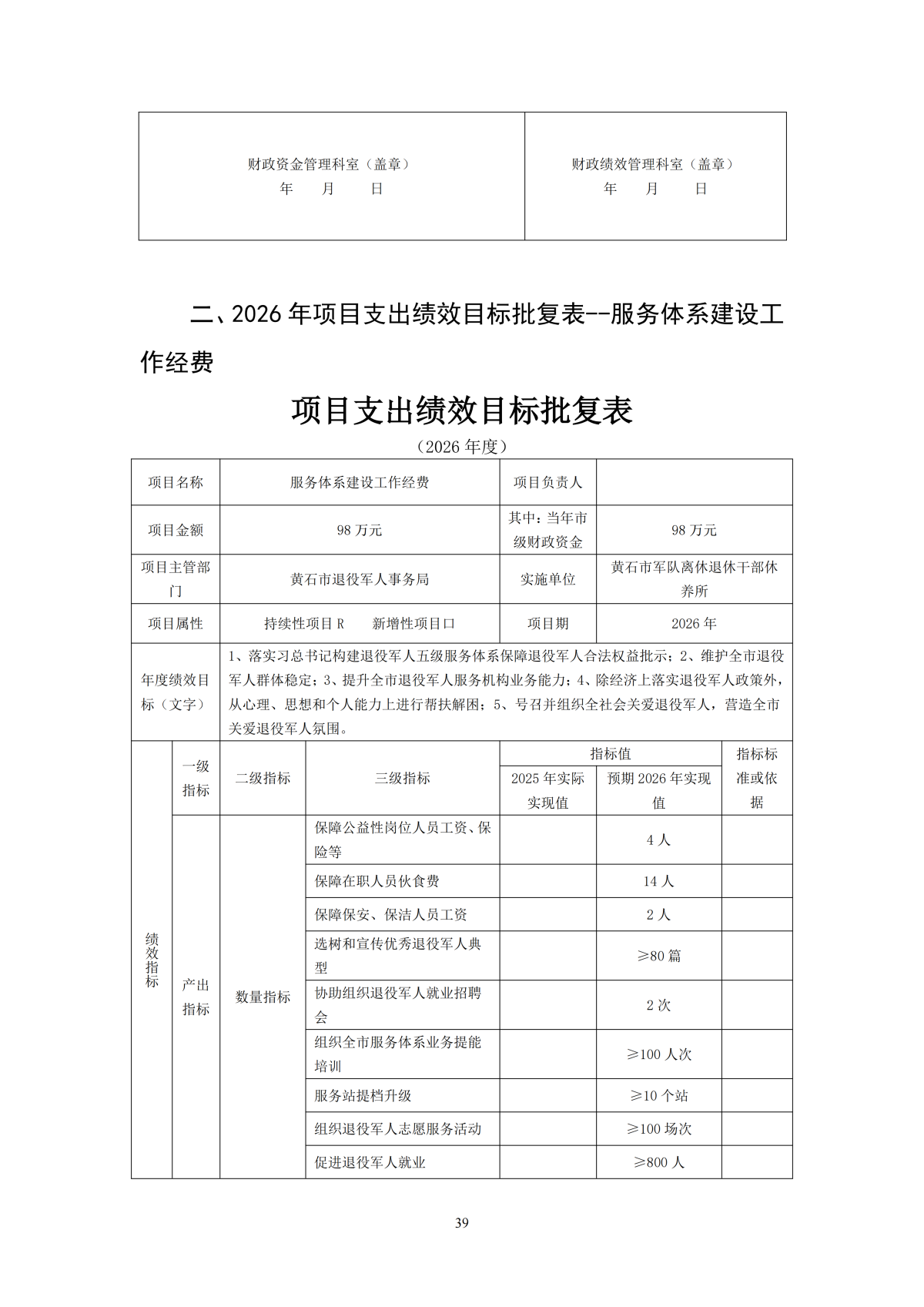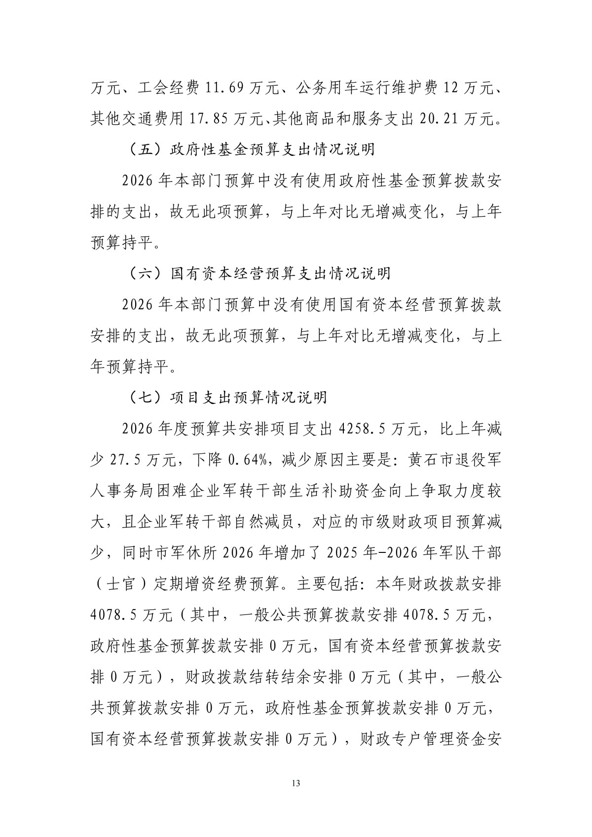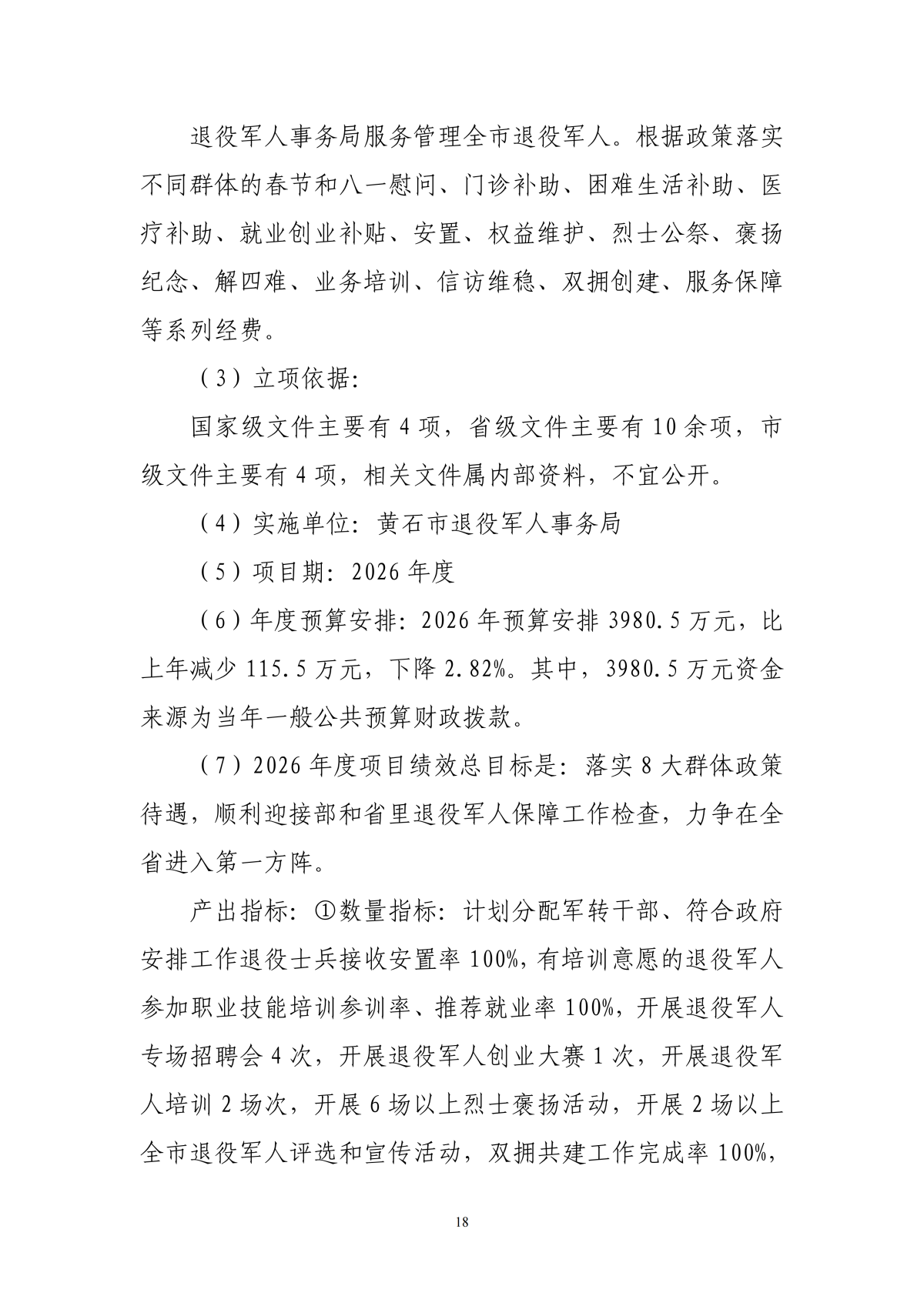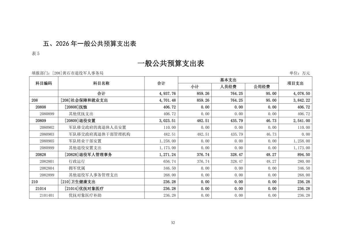2026年度黄石市退役军人事务局(汇总)部门预算公开情况说明