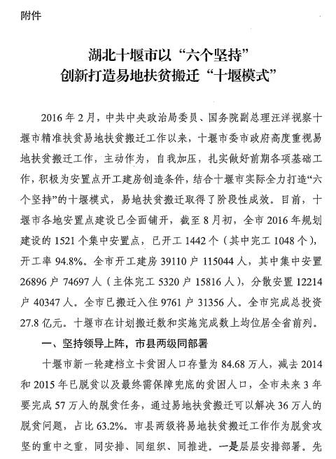 【政策信息】国家发展改革委办公厅关于湖北省十堰市易地扶贫搬迁有关做法和经验的通报