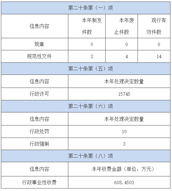 2025年全区新增规范性文件2件,清理公开现行有效规范性文件14件,办理行政许可15745件、行政处罚10件、行政强制3件,行政事业性收费608.4503万元。