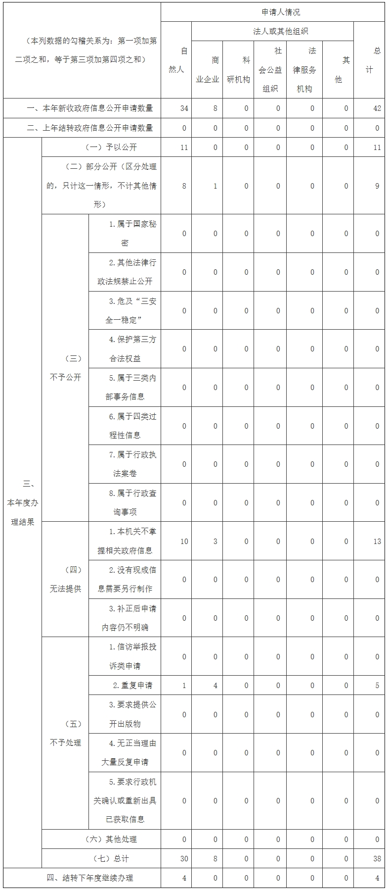 2025年全区各级行政机关累计受理政府信息公开申请42件。从办理结果来看,予以公开11件,部分公开9件,无法提供或不予处理18件,结转下一年度继续办理4件。