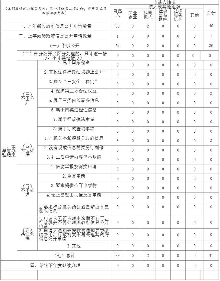 全区收到政府信息公开申请40件,按期办结40件,其中区级邮箱收到依申请公开39件,纸质邮寄1件。